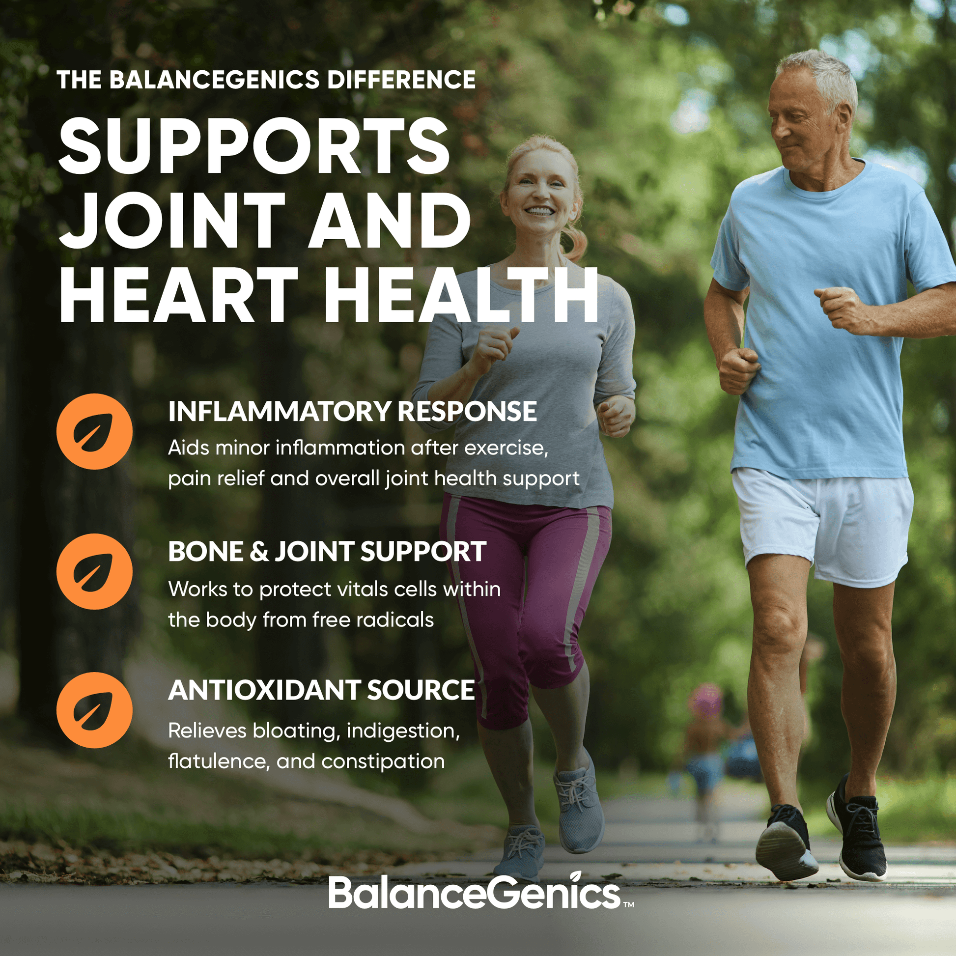 Both Turmeric and Ginger have been shown to help maintain proper joint function and flexibility. They aid in balancing your body so that it responds to its natural healing (or repairing) process in a healthy way, helping with minor inflammation after exercise, pain relief and overall joint health support.