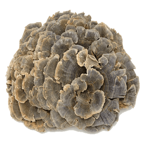 Turkey Tail mushrooms are multicolored fungi that grow on tree trunks and fallen trees in wooded areas. They are plentiful in various parts of the world, including the United States. People have used these mushrooms as a health supplement for centuries. Turkey tail contains a compound called polysaccharide-K (PSK) that stimulates the immune system. It also has a wide variety of phenol and flavonoid antioxidants which help your immune system by promoting a healthy inflammatory response, and stimulating the release of immune supporting compounds.